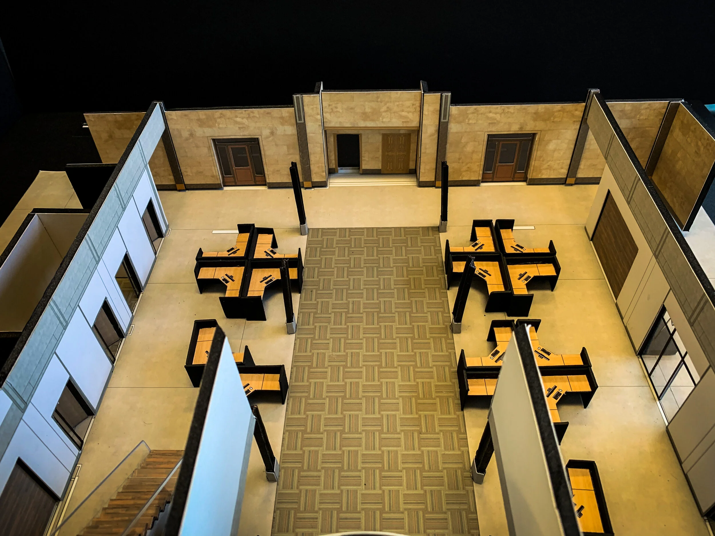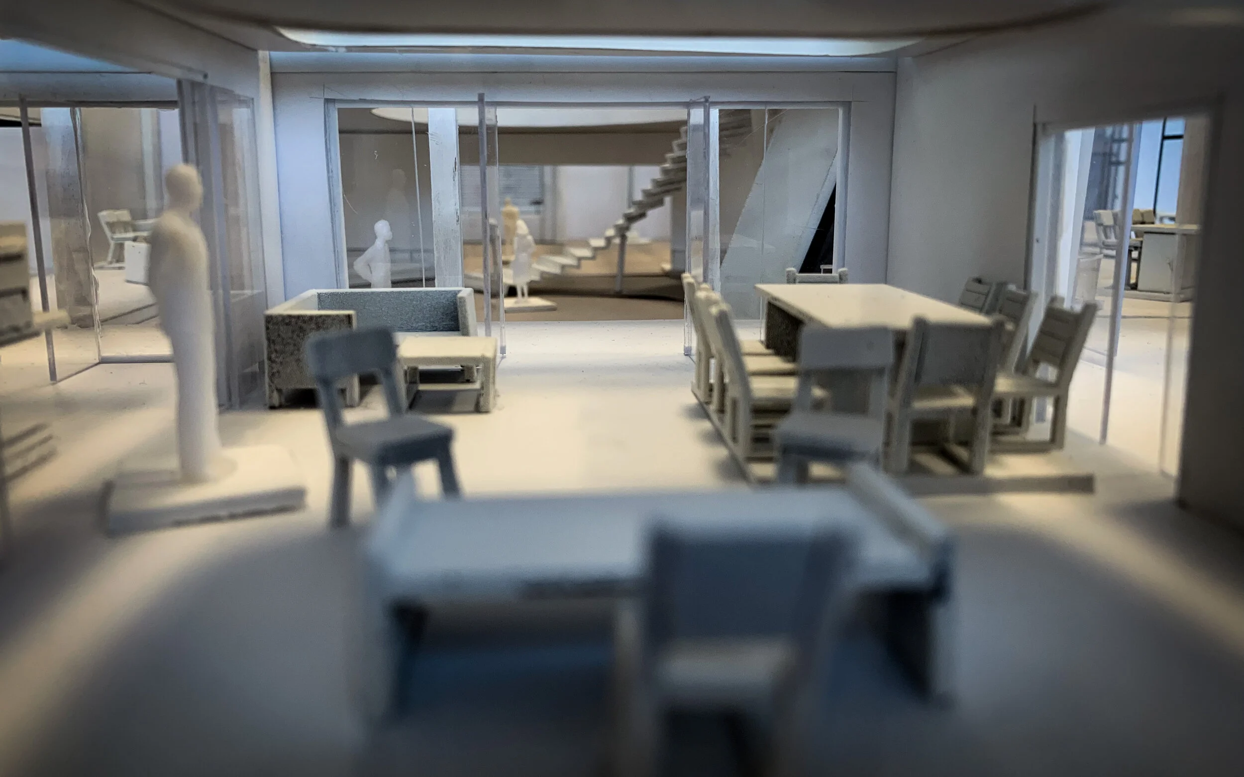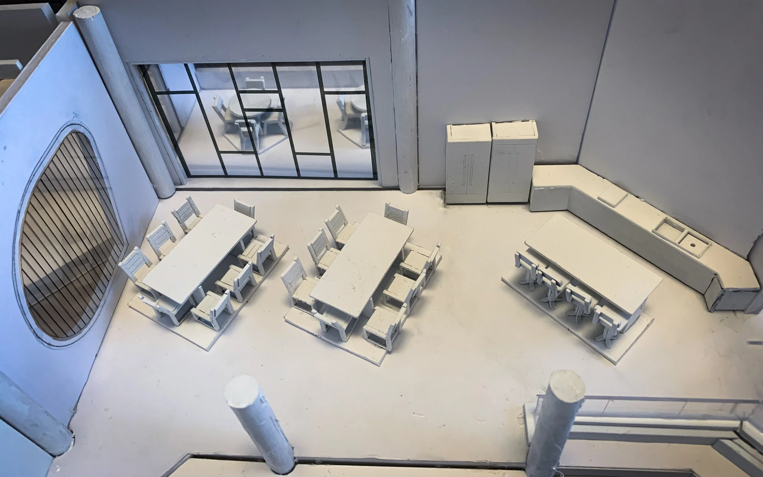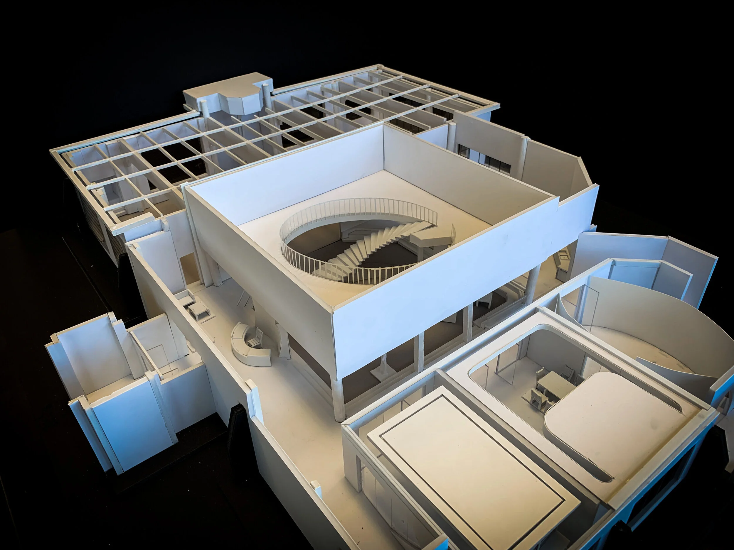 Above is a white, 1/4” scale model of Emily’s Compound in Thunder Force. The model was entirely constructed out of foam core, basswood, and bristol board.